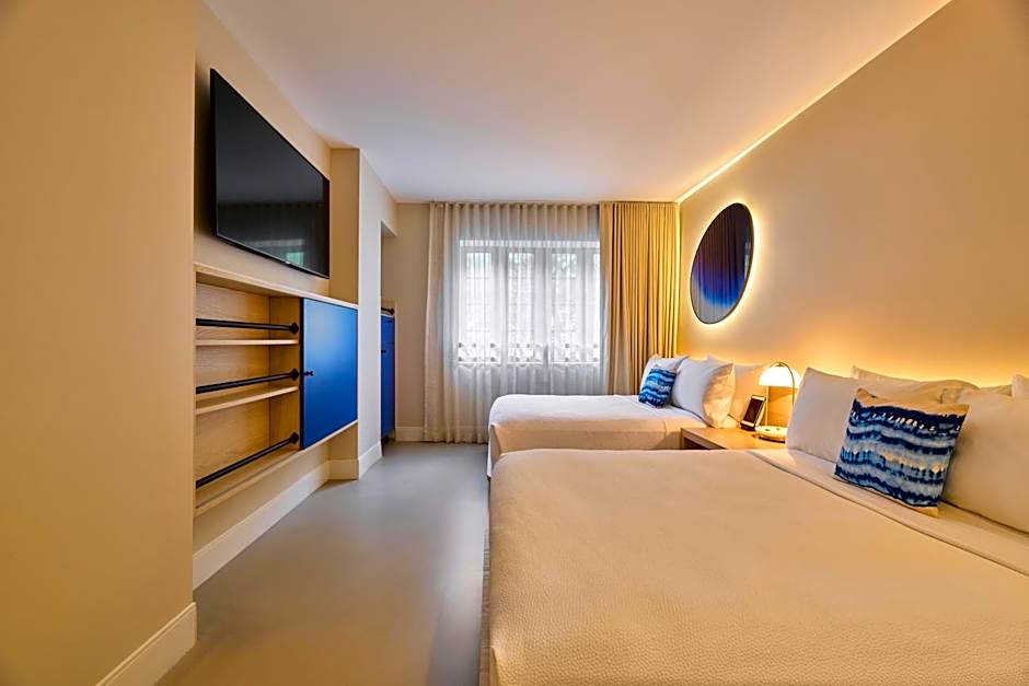 Located in the historic Collins Avenue building, this Accessible Double Double accommodations surrounds guests in a modern, layered interpretation of Miami Beach luxury. Featuring two full beds and a range of bath configurations, inquire with our front desk to learn more about the best option for your reservation.